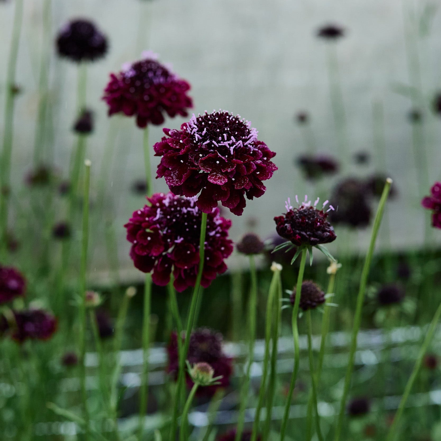 Remarks: Almost black, 2.5cm blooms stand tall on strong, slender stems. A dramatic addition to any bouquet or garden. Also known as mourning bride.