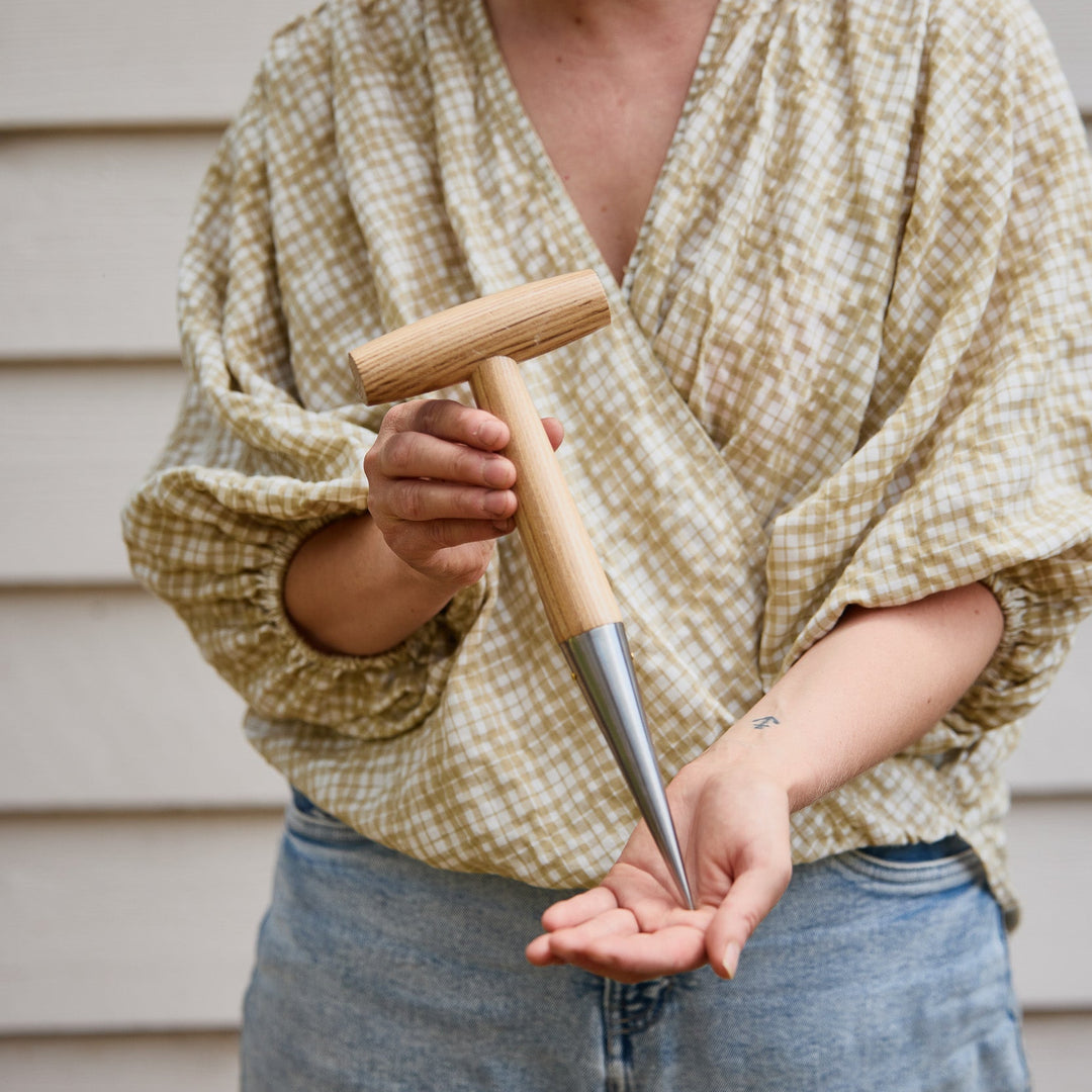 Large Wooden Dibber Garden Planting Tool With Stainless Steel