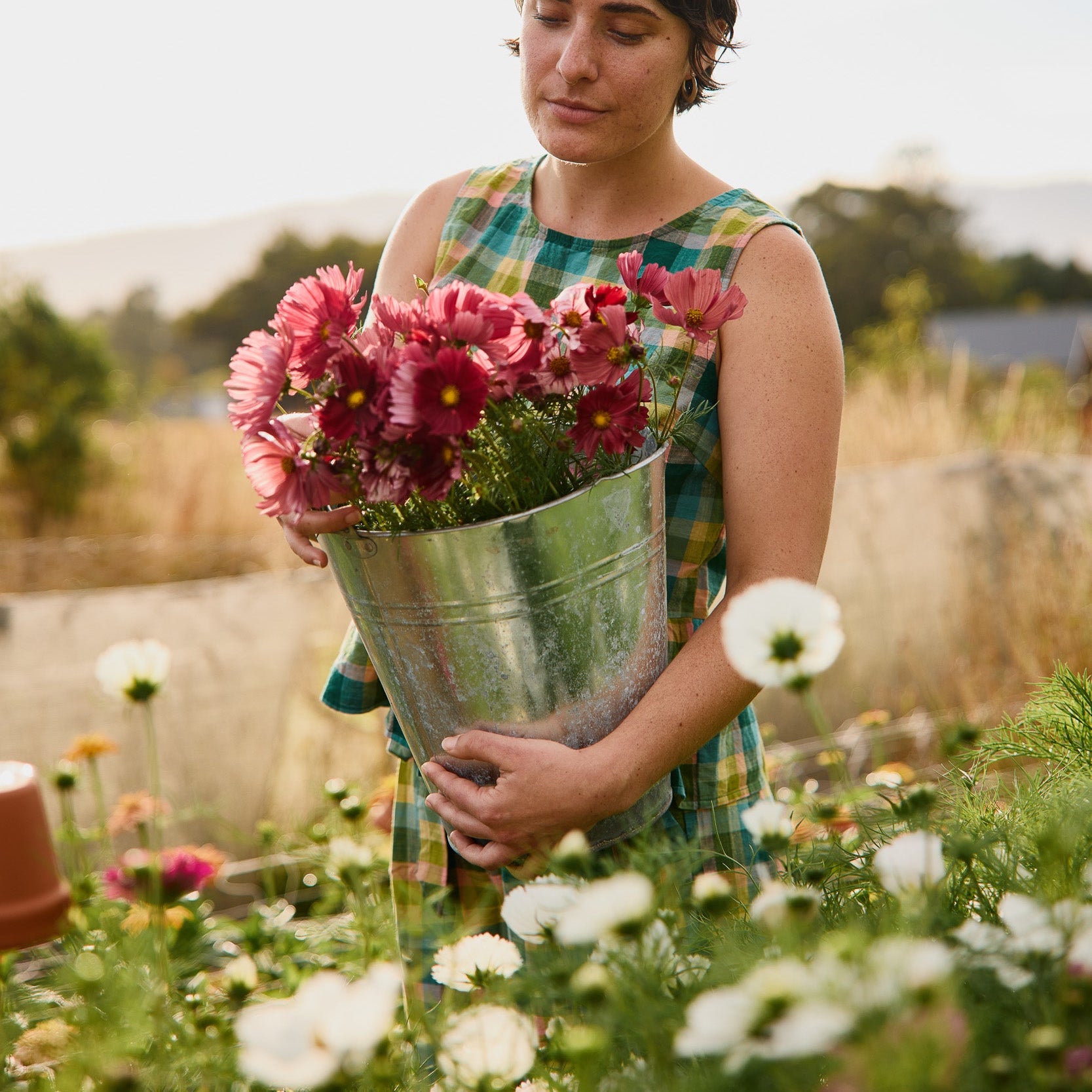 Pinch out your cosmos seedlings when the are 30cm tall (3 true sets of leaves). Pinching out means taking the top 10cm off your seedling. This will encourage a bushier foliage, and more flowers!